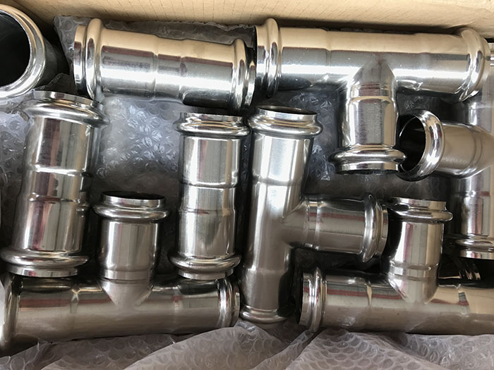 雙卡壓式薄壁不銹鋼管連接是將管材插入管件,利用不銹鋼材料的有效剛性和密封材料的彈性壓縮比原理,同時(shí)充分利用承接口的長(zhǎng)度在管件承接口的U型槽兩側(cè)用專用卡壓工具進(jìn)行徑向壓接。